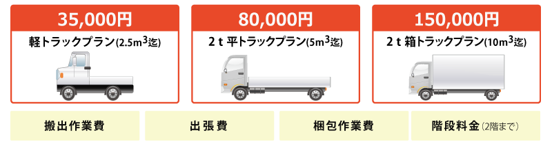 当店の不用品回収・処分は、諸費用もすべて含んだお得なパック料金です。